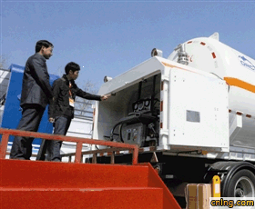 3月29日,第十二屆中國國際天然氣汽車、加氣站、燃?xì)庠O(shè)備展覽會在北京舉行。一輛33立方米LNG(液化天然氣)移動加注車在展會上亮相,吸引眾多觀眾參觀詢問。據(jù)了解,這是全球首輛移動式LNG加注車。它除具有常規(guī)LNG加注站功能外,還能為瓶組用戶提供液相充裝,為管網(wǎng)供應(yīng)氣相天然氣,用于應(yīng)急供氣或調(diào)峰。這次展覽會共吸引了20個國家和地區(qū)的300多家企業(yè)參展,展示了國際天然氣汽車及加氣站設(shè)備產(chǎn)業(yè)最新動態(tài)及發(fā)展趨勢。