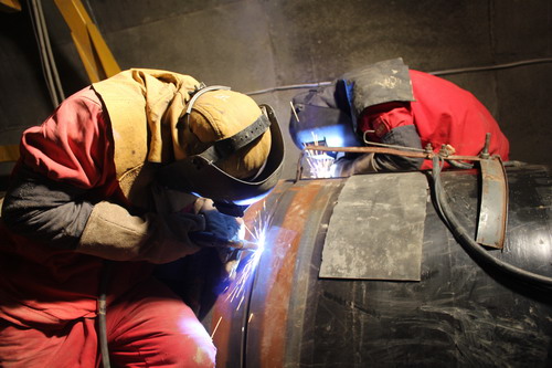 在隧道內(nèi)、河谷段、山坡上都有管道人的身影。針對目前天氣依然寒冷的情況,為確保施工質(zhì)量,員工嚴(yán)格按照施工要求,做好焊接前加熱和保溫工作。為保證工期,員工實行兩班倒施工作業(yè)。